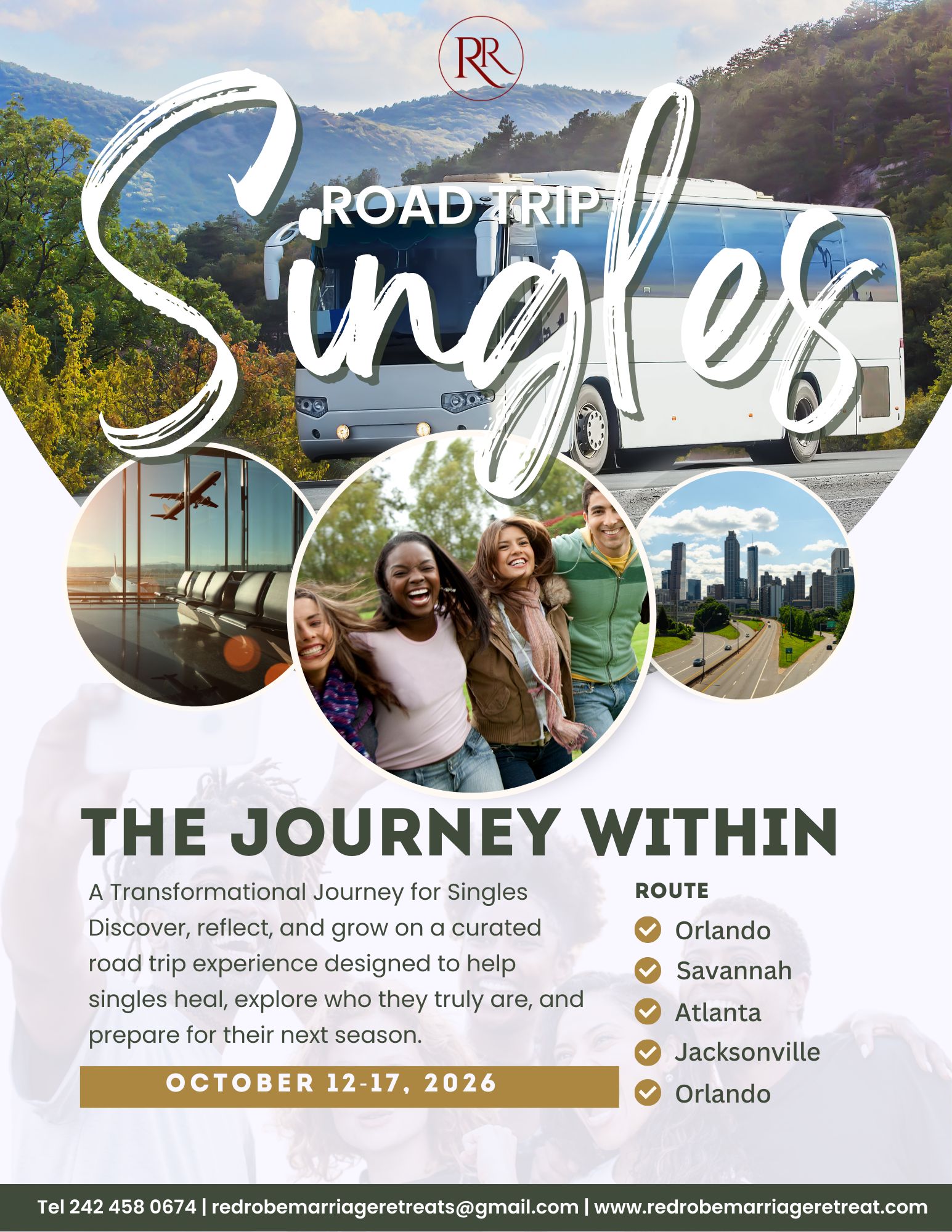 A transformational road trip for singles ready to heal, grow, discover themselves, and have fun along the way before entering future relationships.